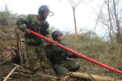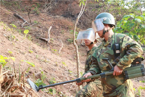 與前兩次掃雷任務相比,這次的雷區(qū)危險系數(shù)更高,埋著的各式爆炸物多達30余種,為世界雷區(qū)所罕見。山高坡陡,世界上最先進的掃雷設(shè)備也派不上用場,只能采用掃雷爆破筒爆破后,再以人工搜排的方式進行。戰(zhàn)士們腳一滑,甚至一塊石頭滾過,都可能引爆地雷。