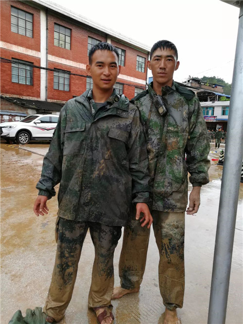 麻栗坡縣猛硐鄉(xiāng)發(fā)生特大山洪泥石流,救災結(jié)束后,杜富國(左)與戰(zhàn)友合影。陳楊/攝