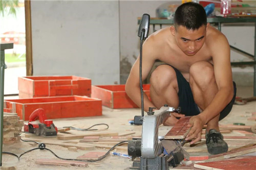 杜富國在制作用于轉(zhuǎn)運地雷和爆炸物的沙箱。楊萌/攝