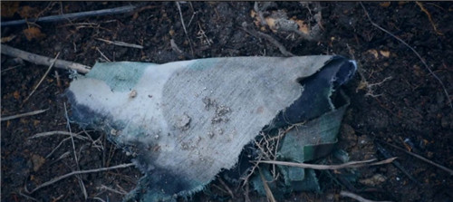 再次來到杜富國受傷的地方,血跡早已經(jīng)和焦黑的泥土混在了一起,地面到處都是樹木的殘枝,一些散落在土里的防護服碎棉絮仍能讓人感受到爆炸現(xiàn)場的慘烈。