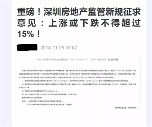 11月25日,地產(chǎn)圈傳出一條重磅消息——有媒體報(bào)道稱“深圳房地產(chǎn)監(jiān)管新規(guī)征求意見:上漲或下跌不得超過15%!”