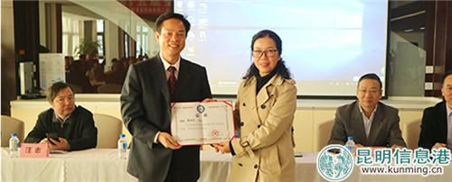 云南省醫(yī)院協(xié)會(huì)副秘書長(zhǎng)范萍給昆明長(zhǎng)和天城康復(fù)醫(yī)院副院長(zhǎng)姚本禮頒發(fā)主任委員證書。供圖
