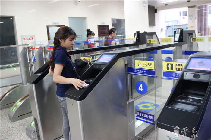 不僅在服務(wù)通關(guān)的軟件上不斷創(chuàng)新,硬件設(shè)施也做到齊頭并進(jìn)。自2010年在全省首家開設(shè)自助通關(guān)查驗(yàn)系統(tǒng)后,到目前為止,河口邊檢站已經(jīng)建成包含出入境旅客、自行車與貨物車輛在內(nèi)的12條自助查驗(yàn)通道,使河口口岸步入了各類通關(guān)方式全領(lǐng)域、全覆蓋的讀秒通關(guān)時(shí)代。今年底前,該口岸還將建成8條自助查驗(yàn)通道,全面助推口岸通關(guān)“提檔加速”。