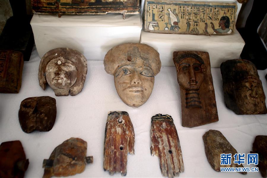 這是在埃及盧克索省尼羅河西岸新發(fā)現(xiàn)的古埃及貴族墓葬中出土的文物(11月24日攝)。(新華社 艾哈邁德·戈馬攝)
