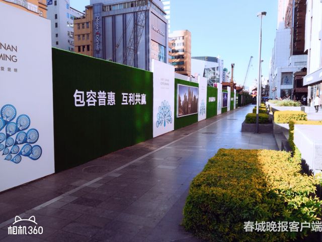 26日,春城晚報(bào)記者來(lái)到三市街一探究竟。與過(guò)去千篇一律的圍擋不同,記者還沒(méi)走近三市街,便被臨近金碧路的一堵綠墻所吸引,幾個(gè)立體大白字極具視覺(jué)沖擊力,如果不細(xì)看很難發(fā)現(xiàn)里面是個(gè)工地。