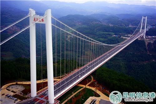 思小高速公路是中國目前惟一一條穿越熱帶雨林的高速公路,在整體設(shè)計上引入了“寧橋勿填、寧隧勿挖”的理念,真正做到“保護自然、回歸自然、融入自然、享受自然”。普宣高速北盤江大橋全長1341.4米,橋面到谷底垂直高度565米,相當(dāng)于200層樓高,比國外最高橋梁巴布亞新幾內(nèi)亞海吉焦峽谷大橋(管道橋)高出近100米,成為世界第一高橋。水麻高速公路沿線溝壑縱橫,滑坡、崩塌、危巖落石等不良地質(zhì)隨處可見,老店子1號、2號隧道采用螺旋展線升坡,成為螺旋式隧道,在全國高速公路中尚屬首例。保騰高速龍江特大橋全長2470多米,橋面離江面280米,是云南省首座特大跨徑鋼箱梁懸索橋,也是亞洲山區(qū)最大跨徑的鋼箱梁懸索橋。