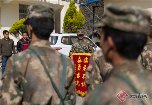 武警維西中隊(duì)接受當(dāng)?shù)卣腻\旗,洪災(zāi)發(fā)生時(shí),這些可愛的戰(zhàn)士“奮勇當(dāng)先,臨危不懼”。