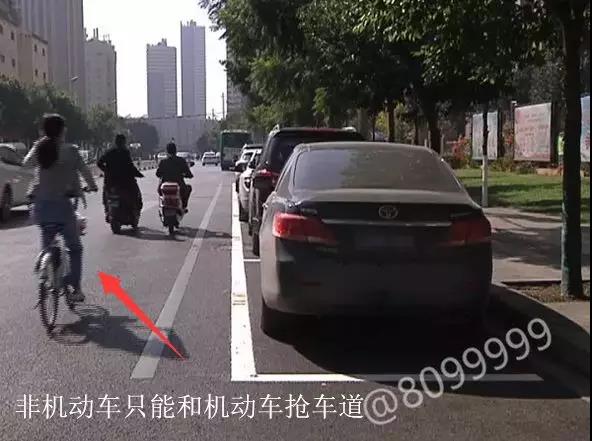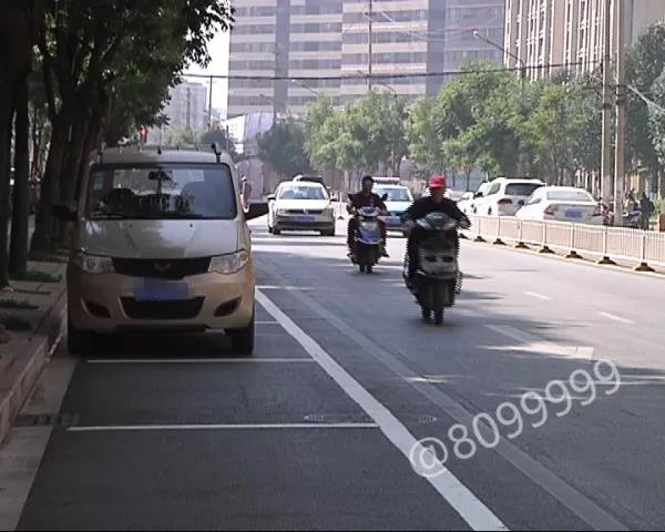 上午,記者在萬宏路看到,雙向四車道的內(nèi)側(cè),都劃上了白色的停車泊位線,幾乎占據(jù)了原本非機動車道全部的位置,電動車和自行車只能從外側(cè)機動車道上借道而行。