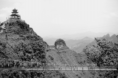 貴州省銅仁市萬山區(qū)朱砂古鎮(zhèn)景區(qū)的玻璃橋景點。歐陽黔森的報告文學《看萬山紅遍》描寫了萬山區(qū)脫貧攻堅的進程和成就。新華社發(fā)