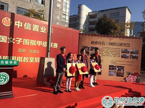 昆明信息港訊 實(shí)習(xí)記者周碩 11月28日早上9點(diǎn),聶衛(wèi)平、常昊、俞斌、小林覺(jué)、武宮正樹(shù)等一眾中日知名棋手共同見(jiàn)證了在官渡關(guān)上實(shí)驗(yàn)小學(xué)舉行的“希望圍棋教室”授牌和捐建儀式。