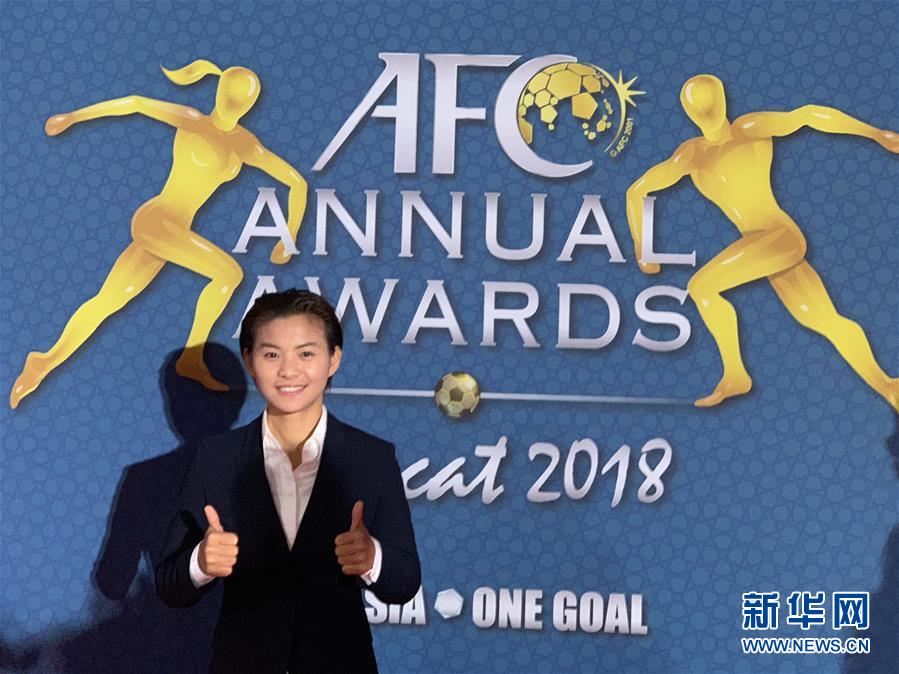 11月28日,王霜在頒獎典禮前留影。 當(dāng)日,在阿曼馬斯喀特舉行的2018年亞足聯(lián)年度頒獎典禮上,中國球員王霜當(dāng)選亞洲足球小姐。新華社/法新