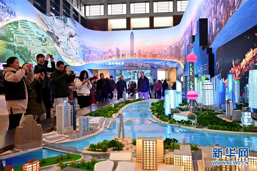 觀眾在“偉大的變革——慶祝改革開放40周年大型展覽”上觀看上海浦東陸家嘴實(shí)景沙盤(11月14日攝)。 新華社記者 李鑫/攝