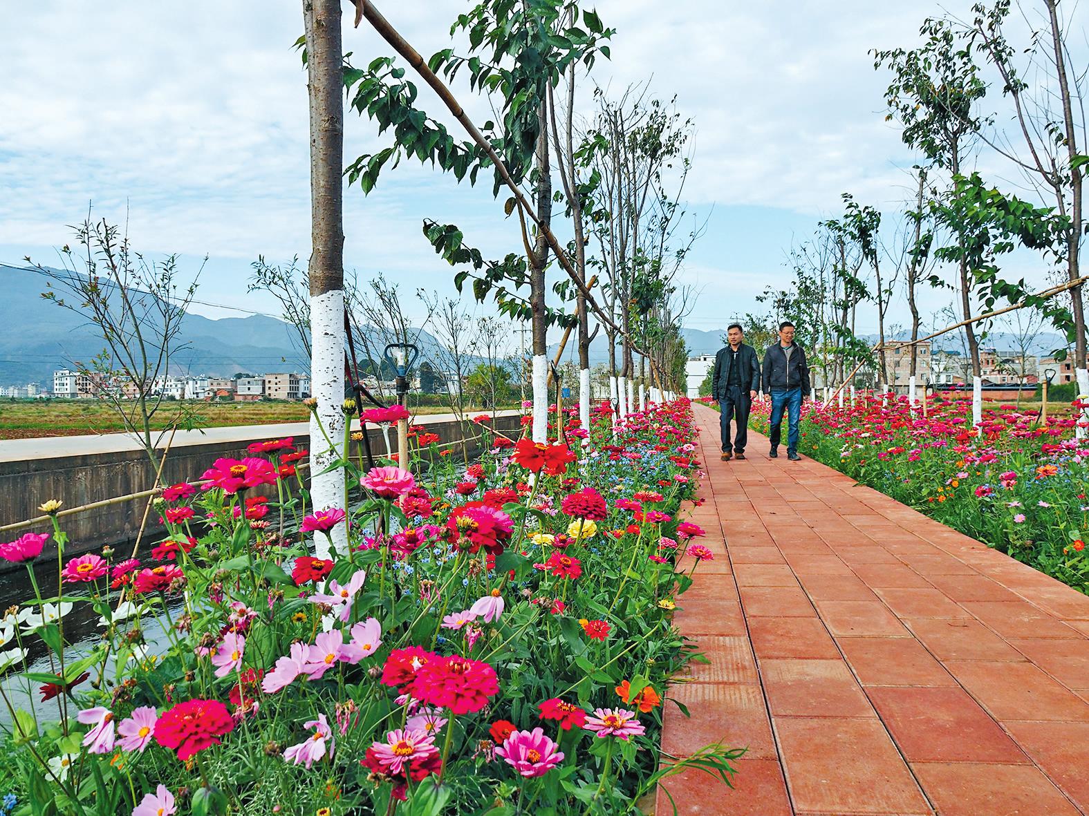 在另一邊,昔日混雜著枯枝廢菜葉的洗菜溝通過改造,變成了溝道暢通的龍溪溝,河道邊鮮花沿岸綻放,時??梢姶迕駛儾栌囡埡笕宄扇貉睾拥啦降郎⒉降綋嵯珊?。