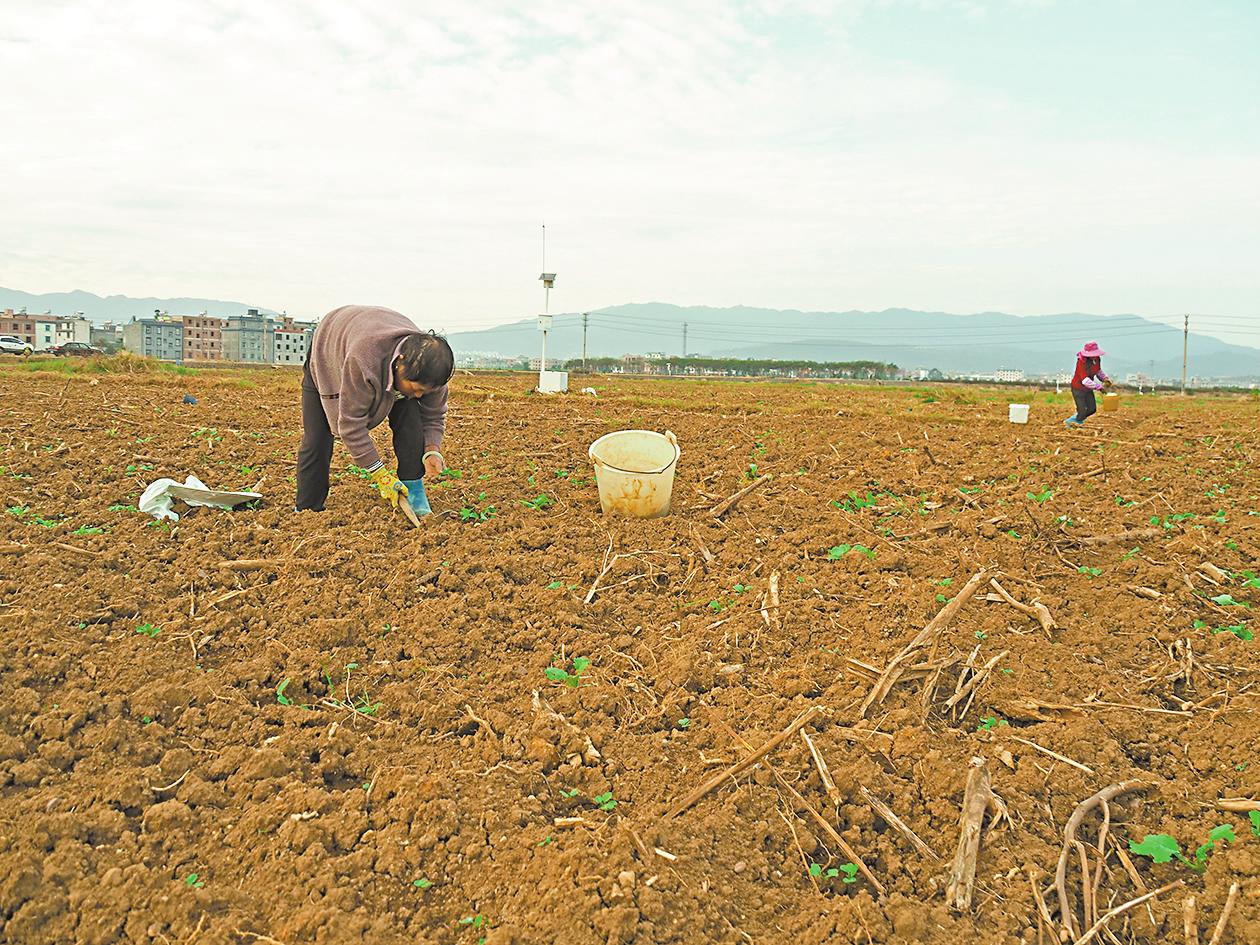 在右所鎮(zhèn)右所村的流轉(zhuǎn)土地里,村民栽種油菜花。