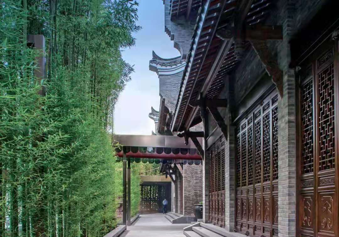 在寬窄巷子,走過一個個兼具川西民居與北方西合院特點的古建筑,你會發(fā)現(xiàn)每家每戶的院門以不同的面貌風(fēng)格吸引著人們的目光,而進(jìn)入院落,則是古典與現(xiàn)代的結(jié)合,別有洞天。例如被法國國寶級設(shè)計師Bruno Moinard以優(yōu)雅的法式風(fēng)格包裝融合而成的成都釣魚臺精品酒店,門口外圍以層層竹子環(huán)繞,門內(nèi)青黛瓦墻,水聲輕流,營造著世人皆鬧我獨靜的城市情懷。