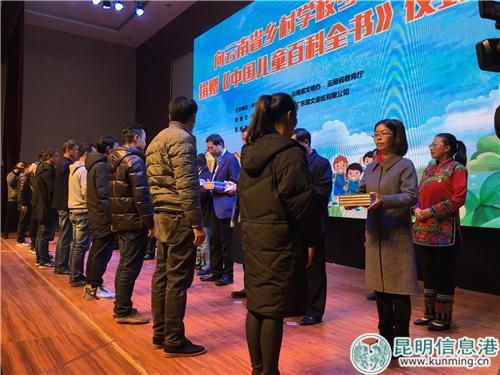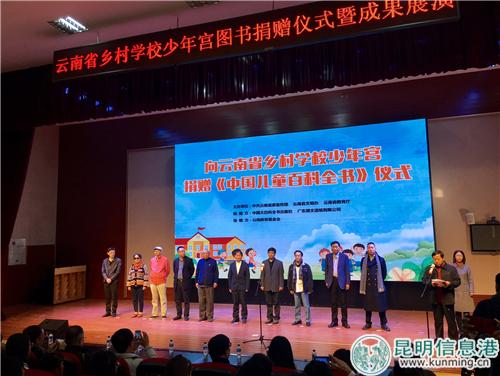 昆明信息港訊 記者昝娟娟 11月29日,《中國兒童百科全書》捐贈儀式在祿勸民族實(shí)驗(yàn)中學(xué)舉行,這標(biāo)志著,接下來云南省的1119所鄉(xiāng)村學(xué)校少年宮將陸續(xù)收到總價(jià)值380余萬元的15000套《中國兒童百科全書》。