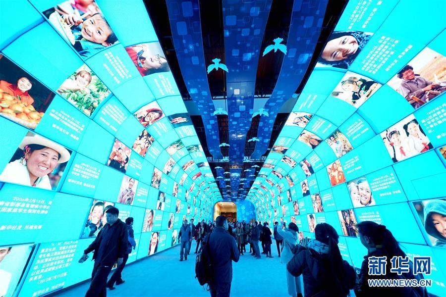 11月29日,觀眾在新華社主辦的“大美中國(guó)”影像長(zhǎng)廊參觀。 當(dāng)日,在北京國(guó)家博物館舉行的“偉大的變革——慶祝改革開放40周年大型展覽”迎來(lái)參觀高峰,單日觀眾人數(shù)超過(guò)5萬(wàn)人次。 新華社記者陳建力/攝