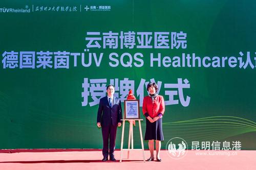 昆明信息港訊 記者納婭 云南博亞醫(yī)院-昆明理工大學(xué)教學(xué)醫(yī)院暨德國萊茵TüV醫(yī)療服務(wù)質(zhì)量管理體系認(rèn)證(SQS-Healthcare)授牌儀式11月29日在博亞醫(yī)院舉行。昆明博健醫(yī)療集團(tuán)董事長葛樹森女士現(xiàn)場致辭,云南省政協(xié)教科文衛(wèi)體委員會副主任杜克琳、昆明理工大學(xué)副校長楊斌、昆明市衛(wèi)計委主任馬濤、德國萊茵TüV大中華區(qū)副總裁方為民先生在授牌儀式上發(fā)表講話,來自省內(nèi)近20余家醫(yī)院院長及代表出席了此次儀式。