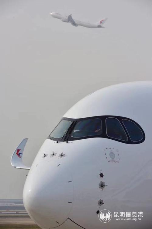 昆明信息港訊 記者上官艷君 11月30日,東航首架空客A350-900飛抵上海虹橋機(jī)場。作為東航新一代旗艦機(jī)型,該飛機(jī)配置了東航全球首發(fā)的新一代世界頂級客艙服務(wù)系統(tǒng),以客戶理念,創(chuàng)新集成航空領(lǐng)域最新科技,引領(lǐng)航空服務(wù)新風(fēng)尚。