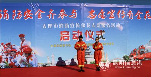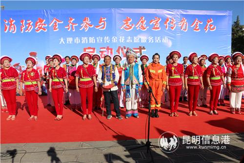 昆明信息港訊 記者勞學麗 11月30日,由大理市消防大隊、大理市婦女聯(lián)合會一同主辦的大理市消防宣傳金花志愿服務活動啟動儀式在人民公園舉行。大理州支隊全面工作負責人李經(jīng)政、大理州婦女聯(lián)合會主席文慧君、市公安局、市委政法委、市委宣傳部、市文明辦、大理市婦女聯(lián)合會、市消防大隊等單位的主要領導以及15個消防宣傳金花志愿服務隊、大本曲藝人和消防員代表共計1000余人參加了啟動儀式。
