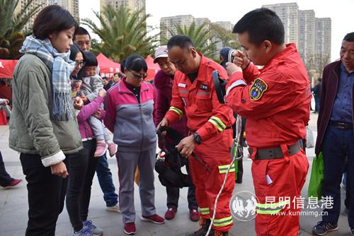 各機(jī)構(gòu)工作人員在現(xiàn)場為市民們提供憲法、安全生產(chǎn)法等法律法規(guī)解讀,并為市民發(fā)放應(yīng)急救援資料。而在裝備展示區(qū),來自昆明市森警支隊、昆明市公安消防支隊、云天化天安救援隊、云南陸搜救援隊等機(jī)構(gòu),現(xiàn)場展示的探測儀、救生艇等一批防災(zāi)減災(zāi)救災(zāi)器材和裝備,也吸引了很多市民駐足觀看了解。