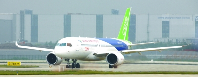 中國(guó)首款國(guó)際主流水準(zhǔn)的干線(xiàn)客機(jī)C919在上海浦東國(guó)際機(jī)場(chǎng)首飛成功。新華社記者方喆/攝