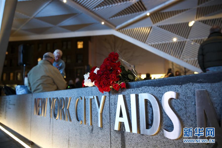 這是12月1日在美國紐約曼哈頓拍攝的世界艾滋病日紀念活動現(xiàn)場。新華社記者王迎/攝