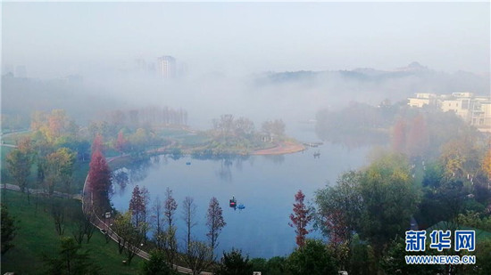 這是11月26日在貴陽市觀山湖區(qū)閱山湖公園內(nèi)拍攝的霧景。 新華社記者 劉續(xù)/攝