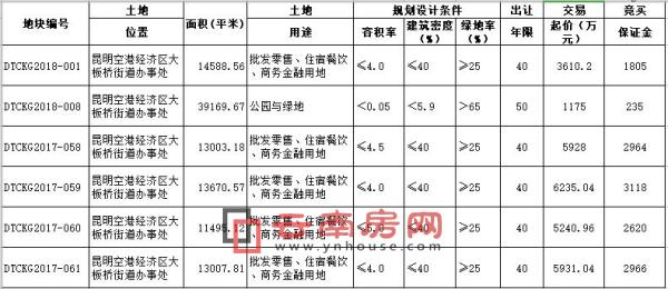空港區(qū)大板橋街道出讓地塊編號(hào)為DTCKG2018-001、DTCKG2018-008,DTCKG2017-058、059、060、061,出讓面約157畝,交易起價(jià)約2.8億元。地塊容積率在0.05-5之間,土地單價(jià)約20-304萬元/畝。除了1宗58.8畝的公園綠地外,其余6宗地都為批發(fā)零售、住宿餐飲、商務(wù)金融用地。土地計(jì)劃在本月21日進(jìn)行網(wǎng)上掛牌交易。