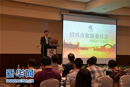 紹興市旅游委員會副主任錢進(jìn)在推介會上致辭。新華網(wǎng) 王大瑋/攝