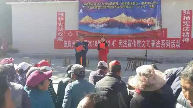 11月14日,受白格堰塞湖泄洪影響,迪慶州德欽縣拖頂鄉(xiāng)、霞若鄉(xiāng)對外通道拖頂至其宗公路和兩座跨江橋被洪水沖毀。11月29日下午,迪慶州2018年“12·4”憲法宣傳暨文化科技衛(wèi)生“三下鄉(xiāng)”第一巡演組全體成員完成了攀夭格鄉(xiāng)的演出后,向德欽縣拖頂鄉(xiāng)進(jìn)發(fā)。