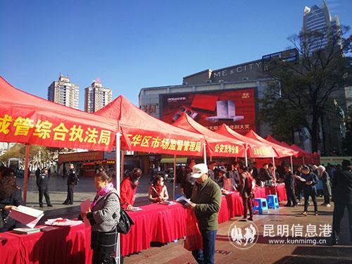昆明信息港訊 記者李紅鸞 12月4日,由中共五華區(qū)委宣傳部、中共五華區(qū)委依法治區(qū)辦、五華區(qū)司法局、五華區(qū)普法辦主辦的以“尊崇憲法、遵守憲法、維護憲法、運用憲法”為主題的昆明市五華區(qū)2018年“12.4”國家憲法日主題宣傳活動在南屏步行街舉行。