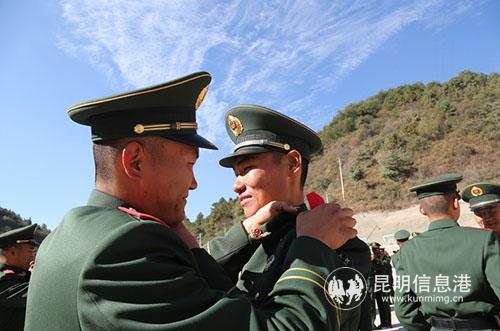 新戰(zhàn)友互相佩戴警銜標(biāo)志服飾
