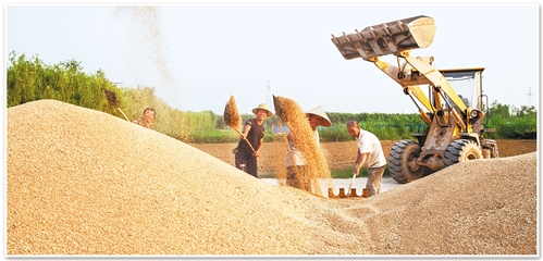 ?土地流轉(zhuǎn)給專業(yè)合作社帶來(lái)發(fā)展機(jī)遇。今年,山東高青縣興茹合作社小麥大豐收。 經(jīng)濟(jì)日?qǐng)?bào)-中國(guó)經(jīng)濟(jì)網(wǎng) 記者喬金亮/攝
