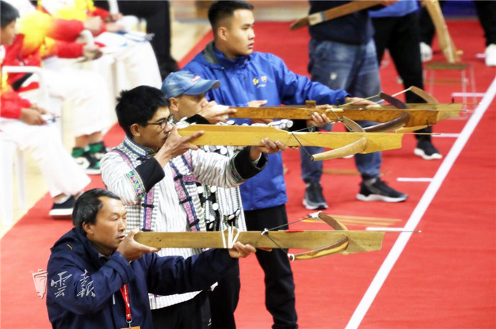 12月5日,省第十一屆民族運(yùn)動(dòng)會(huì)競(jìng)賽全面展開,但上午在滇西科技師范學(xué)院綜合館進(jìn)行的射弩比賽卻吸引了眾多目光,一些媒體攝影記者的“長(zhǎng)槍短炮”也對(duì)準(zhǔn)了有16個(gè)代表隊(duì)參加的射弩比賽選手們,場(chǎng)內(nèi)顯得十分熱鬧。
