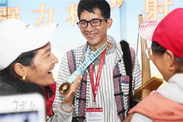 獲得銀獎(jiǎng)的開友迪來(lái)自怒江傈僳族自治州福貢縣上帕鎮(zhèn)。他練射弩僅一年多,拿到獎(jiǎng)牌后激動(dòng)之情溢于言表,連說(shuō)感謝現(xiàn)在的好生活,自己才有機(jī)會(huì)參加比賽,練習(xí)射弩。(云南日?qǐng)?bào) 記者馮永生 方學(xué)良 孫曉云)