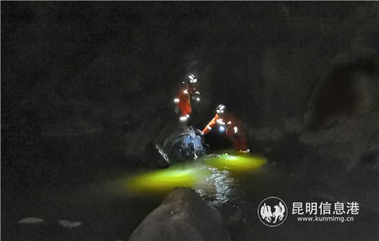 19小時(shí)28分,人員到達(dá)半山腰利用現(xiàn)場(chǎng)條件,制作完畢繩索保護(hù)支點(diǎn)后,救援隊(duì)員再分兩人一組繼續(xù)邊搜索邊往山谷下降,21時(shí)5分隊(duì)員們安全抵達(dá)谷底。經(jīng)觀察發(fā)現(xiàn)事故車輛己嚴(yán)重變形,車輛駕駛員不在事故車內(nèi),指揮員根據(jù)現(xiàn)場(chǎng)情況,決定從事故車輛周邊上游至下游100米范圍進(jìn)行搜救,由于夜間,山谷照明條件差,事故車輛處于河邊、石頭多、水流湍急、搜索難度較大。