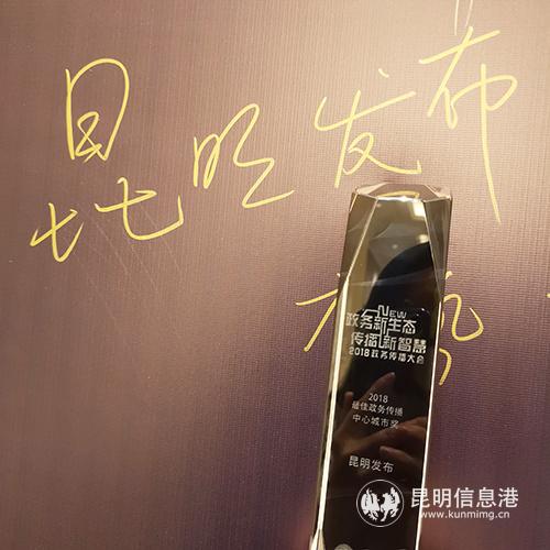 “昆明發(fā)布”榮獲2018最佳政務(wù)傳播-中心城市獎。