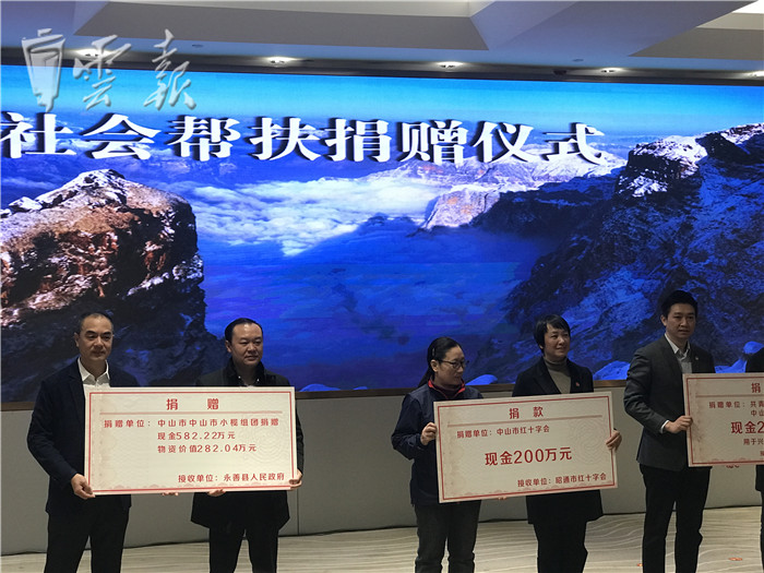 12月7日,廣東省中山市與云南省昭通市在昭通召開扶貧協(xié)作聯(lián)席會議并舉行產(chǎn)業(yè)項目簽約、社會幫扶項目捐贈儀式,兩項合計資金3.498065億元。