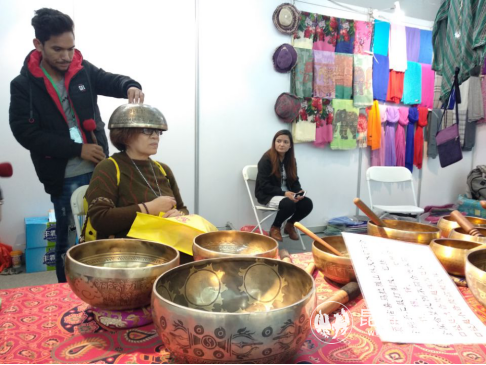 來自尼泊爾展商展示的“頌缽”健康理療法也頗具特色,該頌缽以喜馬拉雅山的隕石燒熔提煉再由手工打造而成。據(jù)說由頌缽發(fā)出的泛音聲響,能平衡、調(diào)和人體的頭頂、眉間、喉頭等七個脈輪,幫助身體放松。目前,“頌缽”也是深受中西方肯定的一種自然理療法。