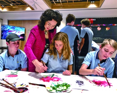 澳大利亞青少年饒有興致地體驗中國畫創(chuàng)作