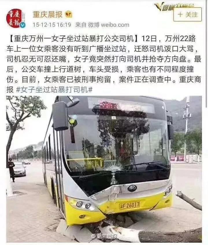 2015年12月12日,就在重慶萬州,就在同一路公交車上,一位女乘客因沒聽到廣播坐過站,遷怒司機(jī)破口大罵。