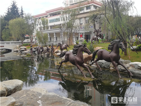 如今的洗馬河,掩映在綠樹陽光下,蜿蜒的河道從柳蔭下穿過,河岸旁布滿了一座座具有明清歷史特色的兵馬奔騰青銅雕塑,極具明清歷史特色,刻畫出了“柳營春試馬、虎帳夜談兵”的歷史文化主題。還原歷史的同時,也將自然山水園林特色最大限度地發(fā)揮了出來。如今但凡從這里走過的市民、游客,都會停下匆忙的腳步,欣賞這別樣的街道風景。