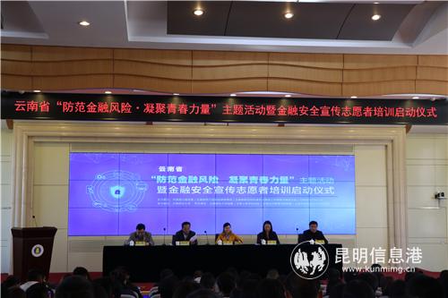 昆明信息港訊 12月10日下午,由共青團云南省委、云南省地方金融監(jiān)督管理局、云南省防范和處置非法集資工作領(lǐng)導小組辦公室、云南省學生聯(lián)合會共同主辦的云南省“防范金融風險,凝聚青春力量”主題活動暨金融安全宣傳志愿者培訓開班啟動儀式在云南財經(jīng)大學舉行。