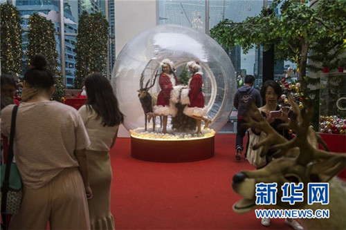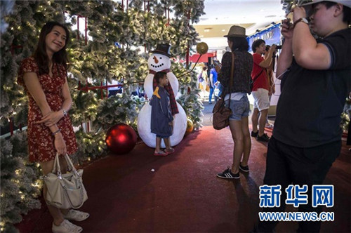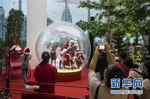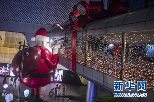 ↑這是12月9日在泰國曼谷的一家商場外拍攝的圣誕裝飾。 新華社/法新