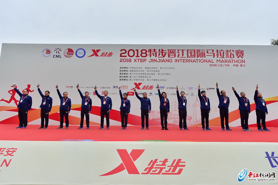 中國田徑協(xié)會主席段世杰,省體育局副局長李靜,福建日報社副總編輯任君翔,晉江市領導劉文儒、張文賢、黃少偉、王海飛,福建省體育彩票管理中心主任劉奉利,晉馬總冠名商特步集團董事局主席兼CEO丁水波,省田徑協(xié)會主席嚴蓬,省體育局經(jīng)濟處產(chǎn)業(yè)辦負責人陳三平,泉州市體育局副局長吳永江,晉江經(jīng)濟報社常務副總編輯吳美章為大賽鳴槍。