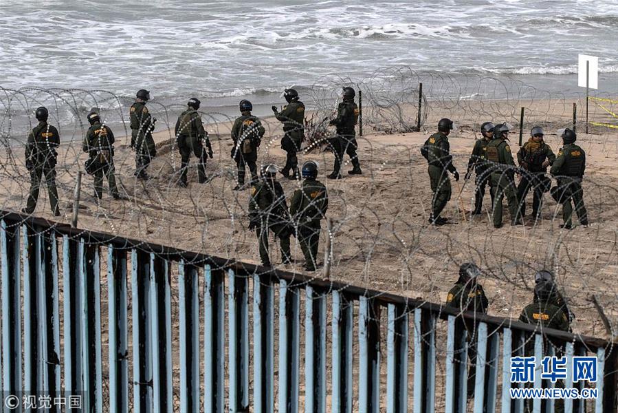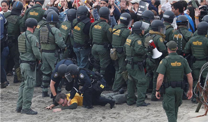 當(dāng)?shù)貢r(shí)間2018年12月10日,墨西哥蒂華納,民眾在美墨邊境集會(huì)支持“大篷車”移民,部分民眾遭警方逮捕。(圖片來源:視覺中國)