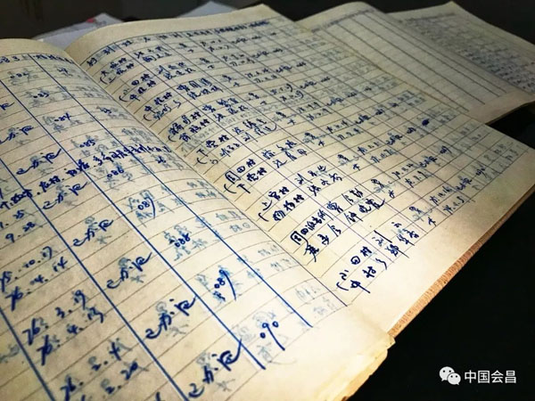 ▲兩大本手寫的工作臺帳,記載著周田鎮(zhèn)一對對新婚夫婦的領(lǐng)證情況