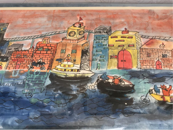 孩子們把小象艾爾在途中經(jīng)歷的風(fēng)景、非遺、民俗、串連成一卷充滿故事情節(jié)、跌宕神奇的兒童版《清明上河圖》。