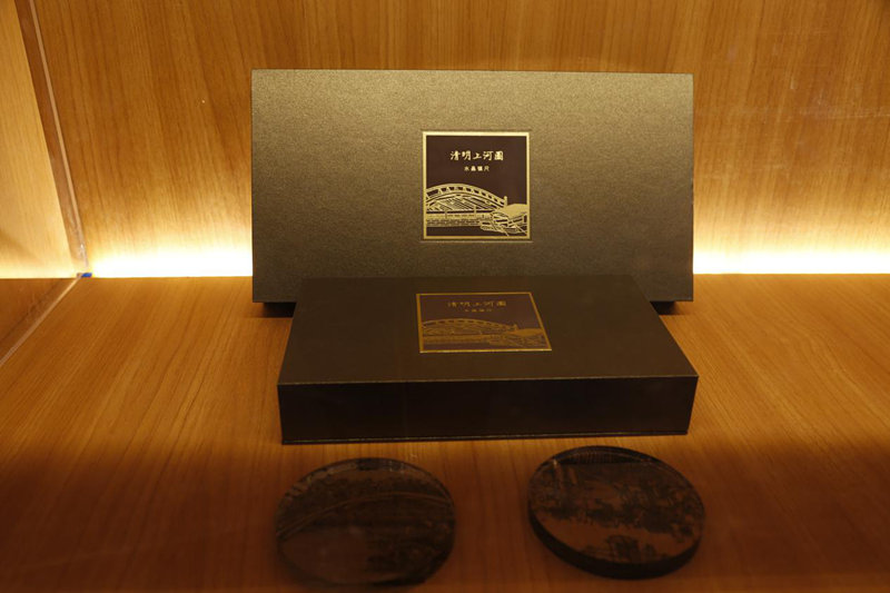 故宮博物院不僅有藏品數(shù)量與質(zhì)量上的天然優(yōu)勢(shì),在文化創(chuàng)新與傳播等方面走出了具有故宮特色的道路。遵循“博物館的‘最后一個(gè)展廳’是文創(chuàng)商店”的理念,本次展覽的最后部分設(shè)置了文創(chuàng)空間,展示了部分“清明上河圖”主題系列文創(chuàng)產(chǎn)品。